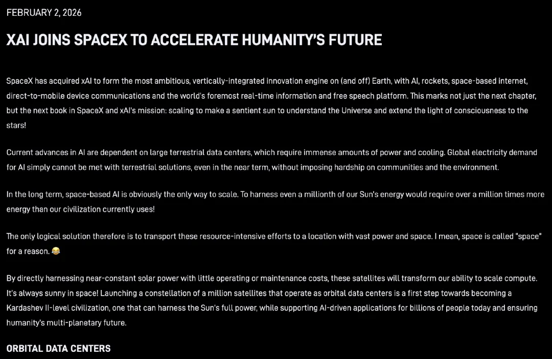双方的合并,也让马斯克的“太空算力”叙事,更加丰满,更具想象力了。